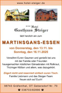 Herzlich Willkommen bei Ihrem Thüringer 3-Sterne Hotel-Gasthaus Steiger.